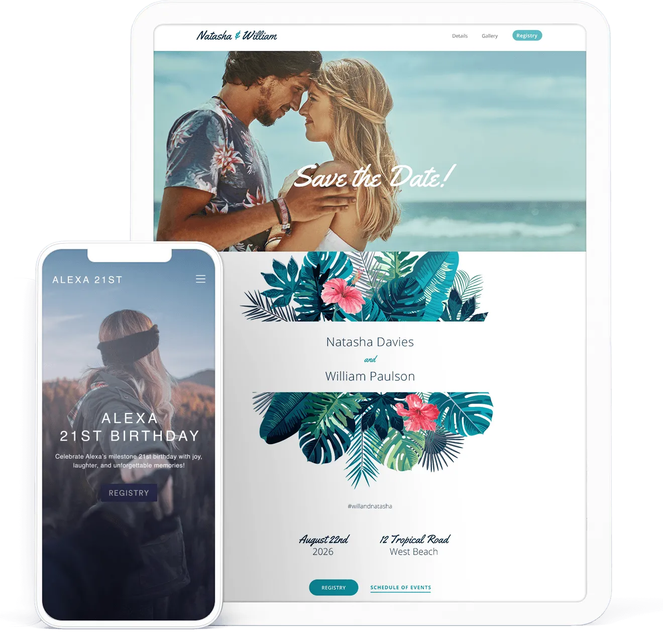 Design and personalize a customizable event website that guests can easily access for event details. Instead of juggling questions and messages about your upcoming event, simply direct invitees to the website for answers to any questions or concerns they may have.