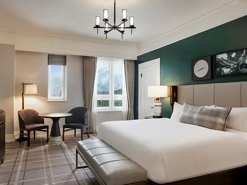 Guestrooms and suites offer cozy comfort with panoramic views of the surrounding mountains, valleys, and forests. Whether you choose a classic room or an expansive suite, each space is designed to be your restful haven amid the awe‑inspiring natural beauty that defines Banff.