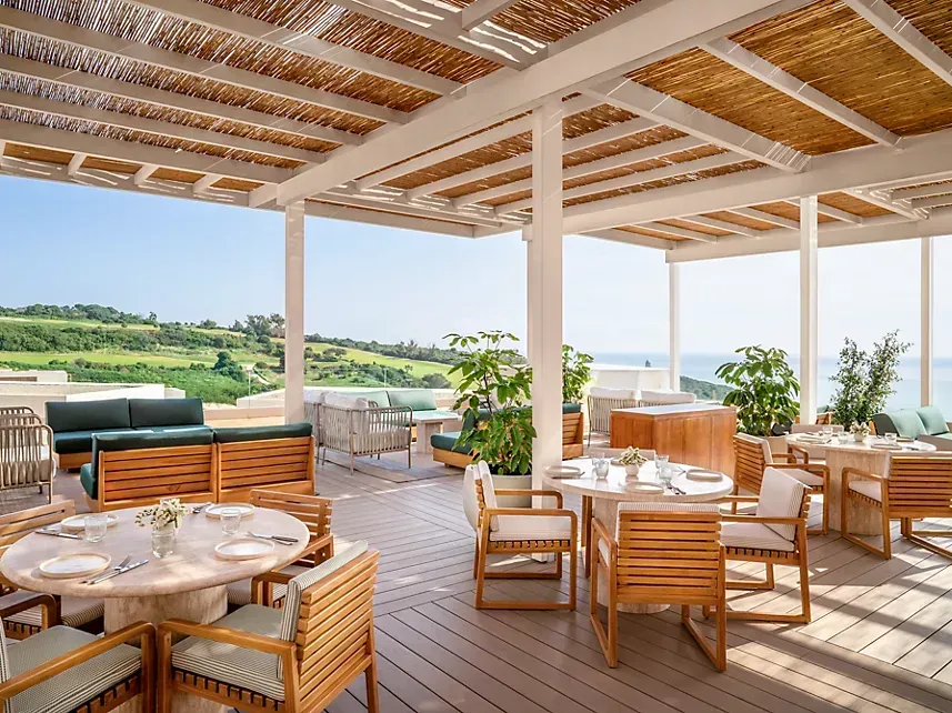 Accommodations range from beautifully designed guest rooms with terraces overlooking the sea or gardens to spacious suites and private villas offering extra comfort and privacy. Many rooms showcase Mediterranean-inspired interiors and open out to sun-soaked outdoor spaces perfect for taking in the horizon.