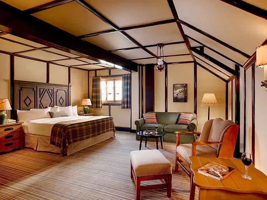 Accommodations range from beautifully designed guestrooms and suites to charming cabins tucked into the forest — all crafted to reflect the resort’s rustic heritage. Many rooms offer serene views of the river, gardens, or wooded surroundings, creating a cozy and restorative retreat after a day of adventure.