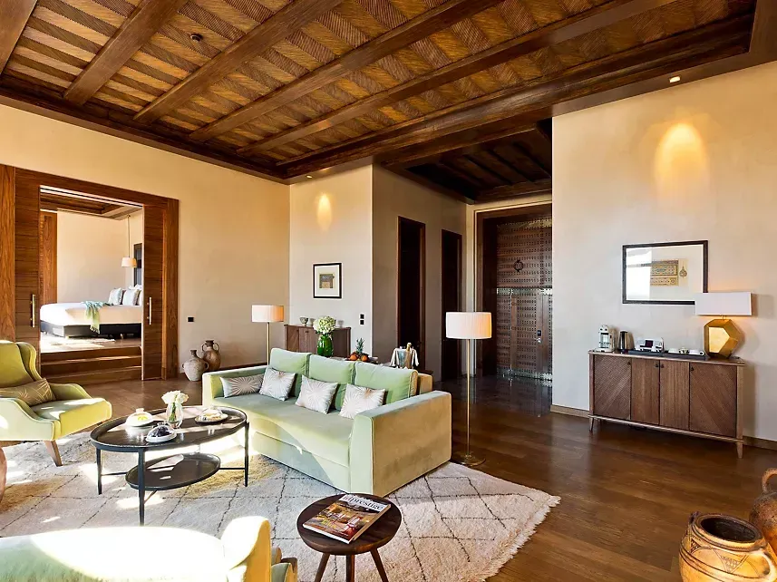 Guestrooms and suites are beautifully appointed with refined décor, plush comforts, and private terraces or balconies overlooking the resort’s gardens or golf course. Each space creates a peaceful retreat, inviting you to unwind in style after mornings spent exploring Marrakech’s medina or afternoons by the poolside.