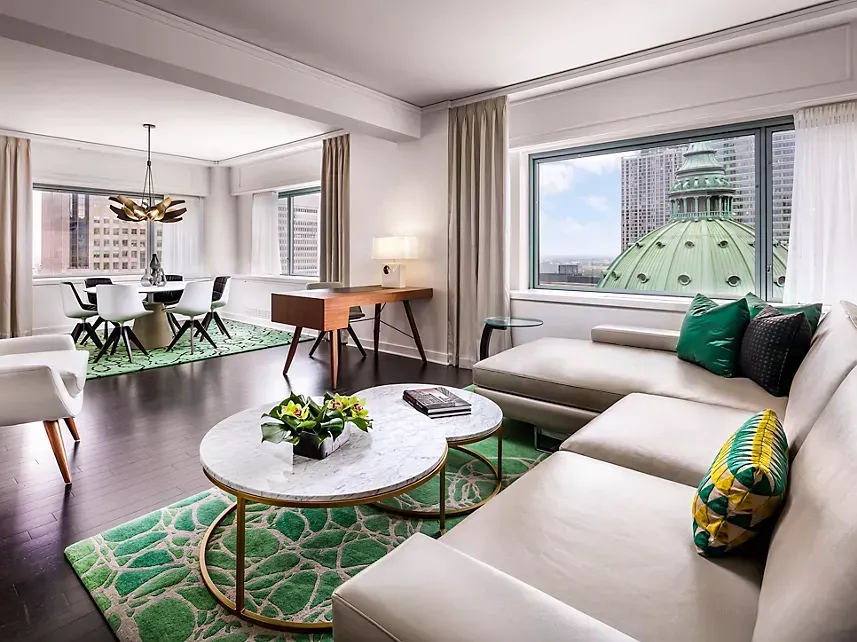 Guestrooms and suites offer elegant comfort with thoughtful amenities and contemporary style. Many rooms feature sweeping views of the city skyline, providing a peaceful retreat above the energy below. Whether you’re visiting for business, leisure, or a special occasion, every stay strikes a balance of refinement and ease.