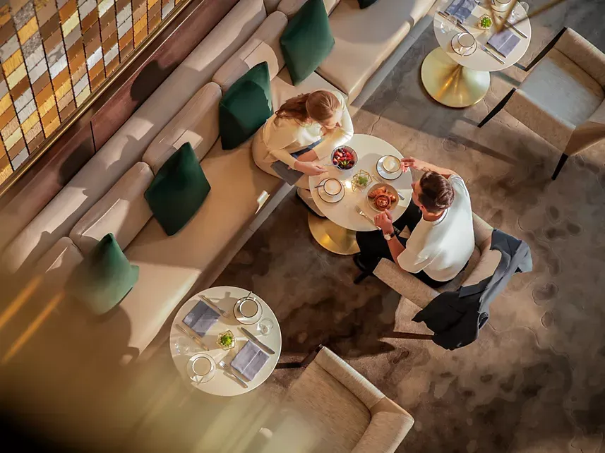Accommodations here are spacious and stylish with a residential feel. Whether you choose a standard guest room or upgrade to Fairmont Gold, you’ll find modern comforts like well-appointed work desks, plush bedding, and thoughtful touches that make the hotel feel like a luxe home away from home. Fairmont Gold adds private lounge access, concierge service, and complimentary breakfast and canapés for a more elevated stay.